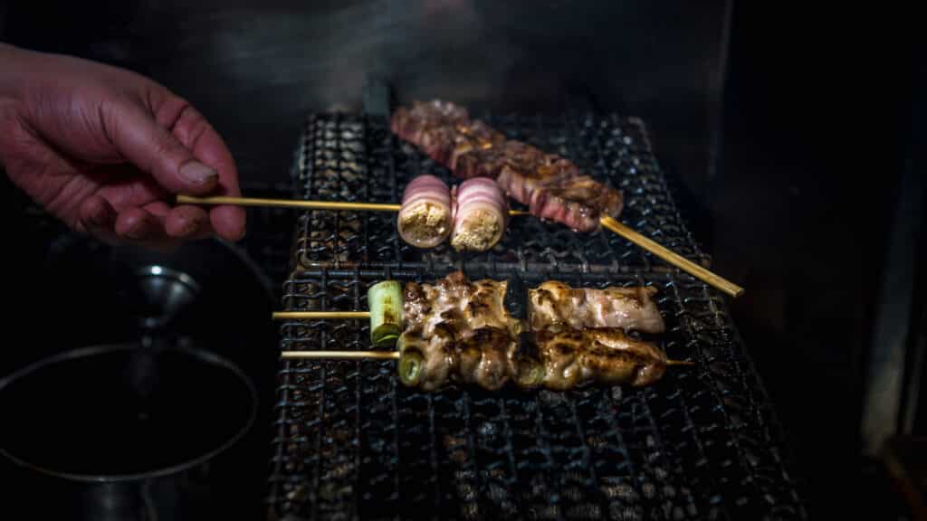 - Snack on yakitori, motsu nikomi (beef stew), and grilled skewers
