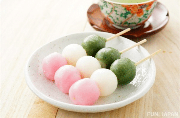 - Dango: Skewer-stacked mochi balls, often glazed with soy-sugar mitarashi sauce. Spring’s hanami dango glows pink, white, green.