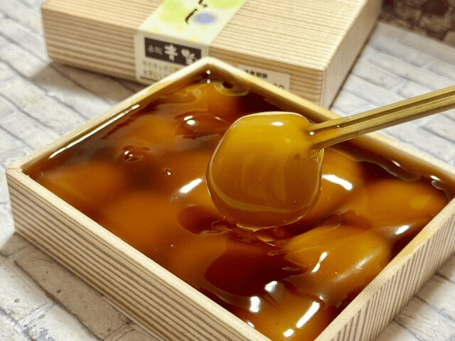 In Kanazawa’s tea district, Mameya’s mame daifuku (¥500)—mochi with salty beans—pairs with matcha (¥1,000 set). The yokan (¥700) gleams gold; kids love the crunch. A historic shop near Kenrokuen Garden—elegant, welcoming.