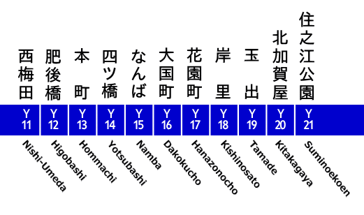 - ???? Follow Color Codes: Subway lines are color-coded: red (Midosuji), purple (Tanimachi), blue (Yotsubashi), etc.