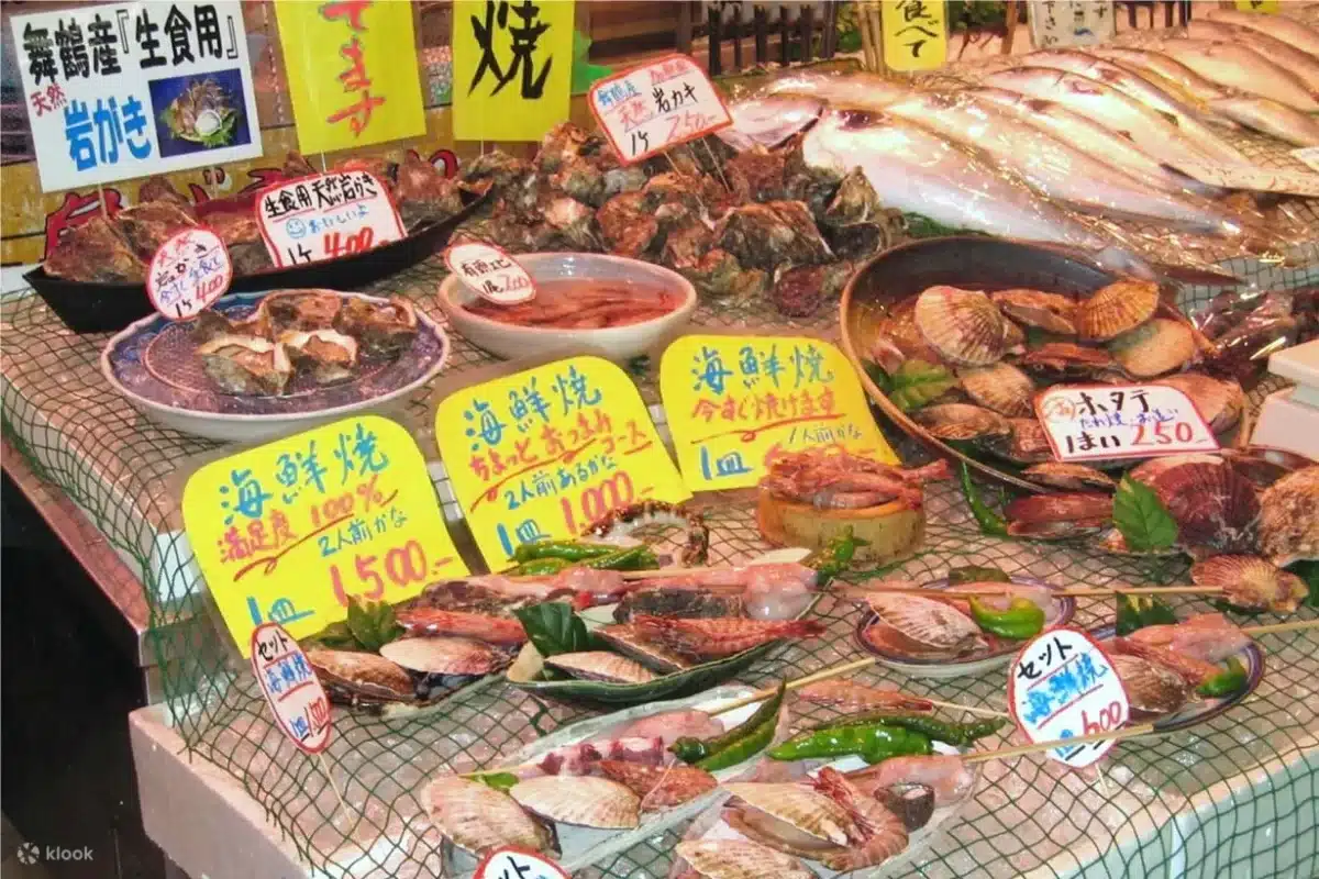 Discover three hidden coastal treasures of Kyoto Prefecture: the largest seafood market on the Sea of Japan, the iconic Amanohashidate sandbar, and the charming fishing village of Ine with its unique funaya boat houses. This full-day tour offers stunning natural scenery, cultural landmarks, and fresh seafood experiences.