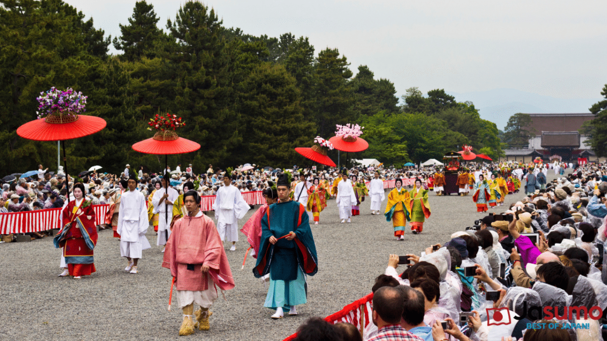 Step back in time at Aoi Matsuri, one of Kyoto’s three great festivals, celebrated for its majestic Heian-period procession and deep historical significance. Taking place annually on May 15, this centuries-old event features a regal parade of nobles, court ladies, and ox-drawn carriages, all dressed in splendid Heian-era (794-1185) attire. The festival’s name, “Aoi” (hollyhock), comes from the sacred leaves adorning the costumes and decorations, believed to bring divine protection and good fortune.