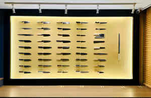 (Above “Stayable Movie Theater” hotel, look for knife display in 2F window)