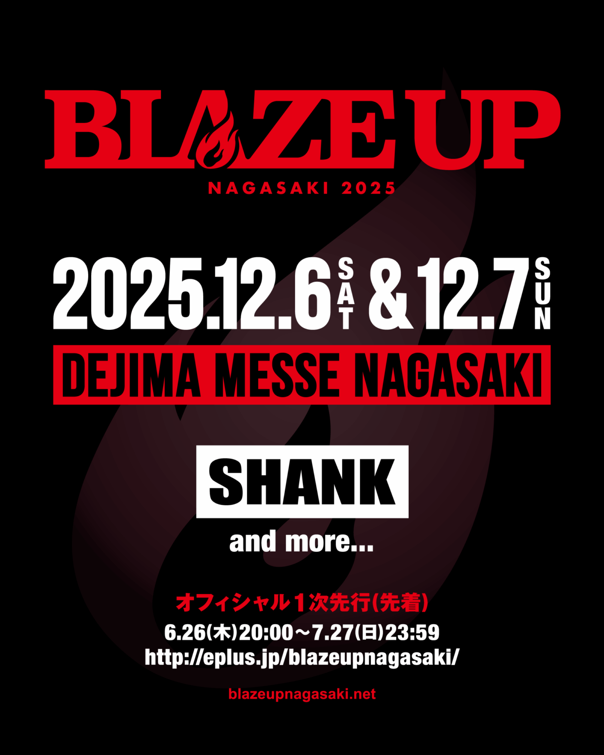 BLAZE UP NAGASAKI 2025 is a high-octane two-day rock and punk festival igniting Kyushu’s music scene at Dejima Messe Nagasaki Event Exhibition Hall. Running December 6 (Sat) – 7 (Sun), 2025, with doors at 09:00 and shows starting at 11:00, this indoor punk/rock extravaganza features 18 powerhouse acts across two explosive lineups.