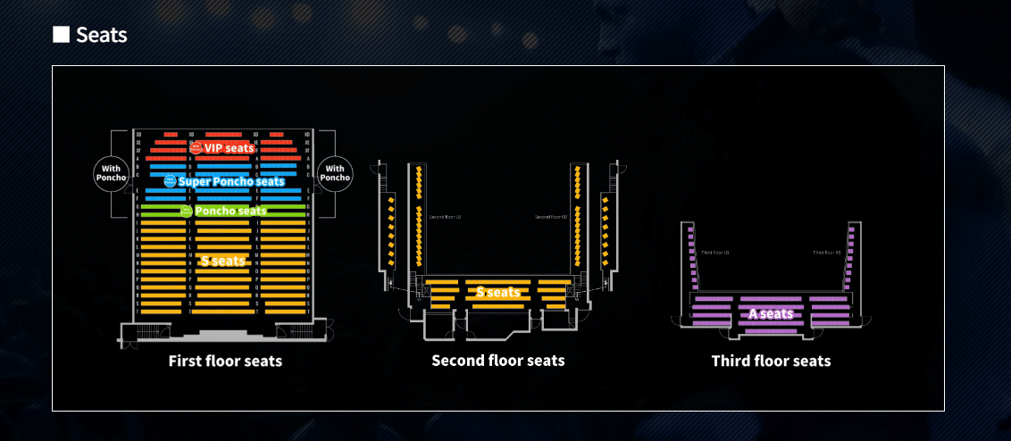 - Poncho Seats (rows 9–10, poncho provided):