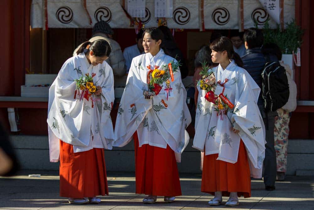 Another highlight is the Shijoryu Hochodo performance, a captivating ritual demonstrating expert skill in wielding kitchen knives for artistic fish filleting. Additionally, a Shinto dancer dressed as Daikokuten shakes a lucky mallet over the heads of participants, granting prosperity and protection.