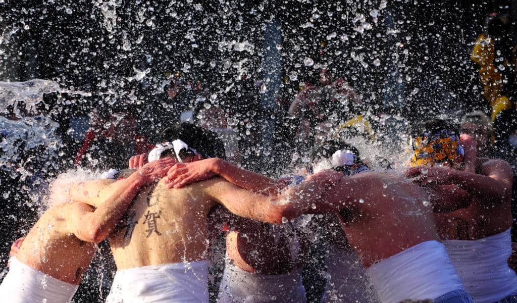 Local men in their unlucky years (yakudoshi) run through the streets while spectators throw water, symbolizing purification and fire prevention.
