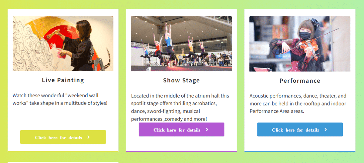 • Live Performances: Enjoy music, dance, and live art performances that enhance the creative experience.