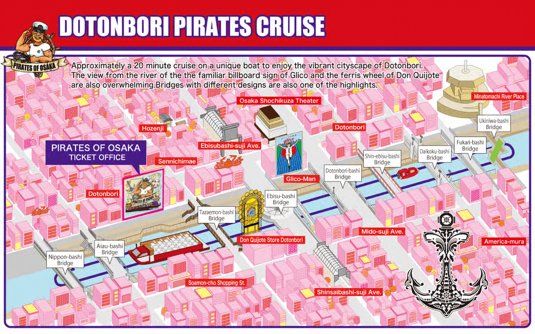 Please arrive 5–10 minutes before your departure time. The boat will dock 10 minutes prior. Show your voucher to the PIRATES OF OSAKA staff.