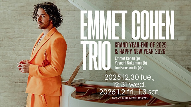 EMMET COHEN TRIO Japan Tour 2025-2026 is a swinging, century-spanning jazz odyssey by Emmet Cohen (born 1990 in Miami), the virtuosic pianist whose stride-to-contemporary mastery—rooted in Monk, Tatum, and Jarrett—has redefined modern jazz since his 2011 Thelonious Monk Competition finals and debut In the Element. With over 1 million YouTube views via “Live from Emmett’s Place” (pandemic-era streams now global jazz TV), DownBeat Rising Star wins, and 2025 International Jazz Day Abu Dhabi honors, Cohen’s trio (with Russell Hall on bass, Kyle Poole on drums) delivers ~90–120 minute “jazz rampages” of Harlem stride, bebop burners, and original grooves amid intimate club vibes and crowd-surfing solos.