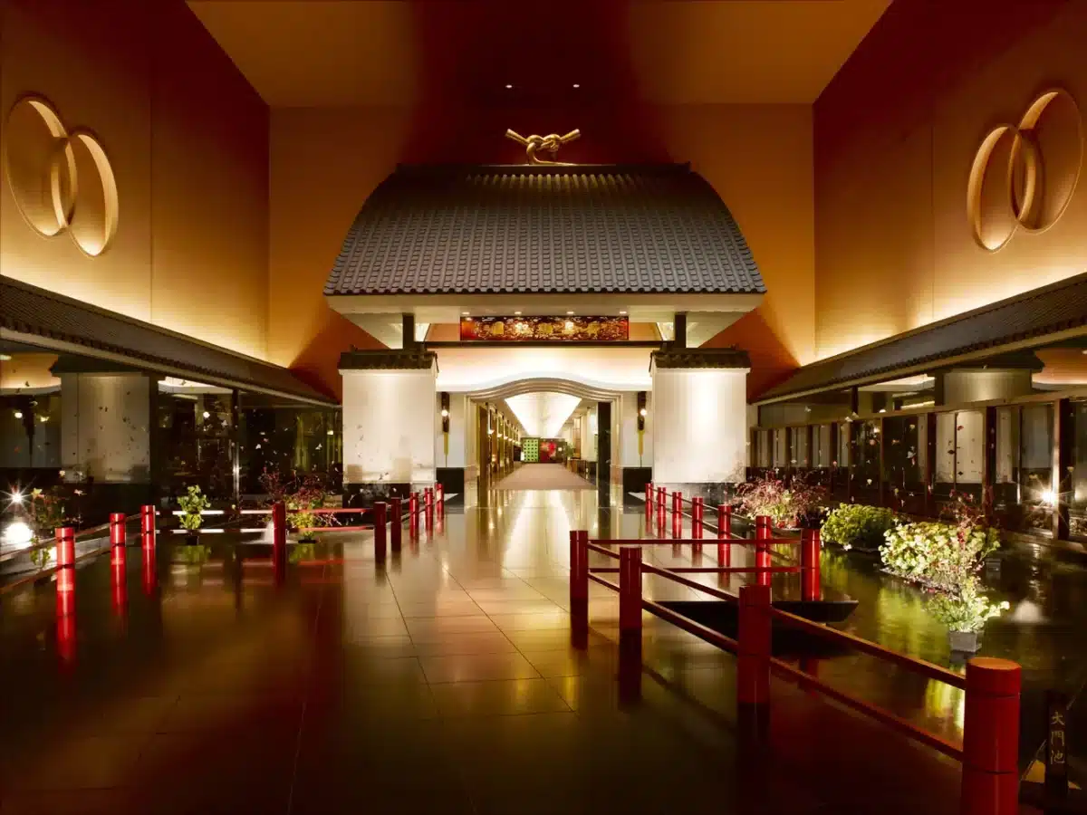 A luxurious hotel known for its stunning interior and historical design, with murals and rooms that echo traditional Japanese elegance.