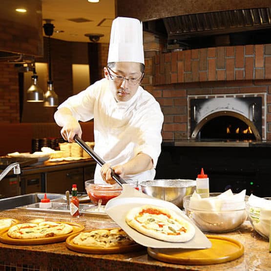 Contact Jasumo Now →The open kitchen is a standout feature, offering a 360-degree view where diners can watch their meals being prepared. The live action includes everything from freshly baked pizza to tempura, Chinese dishes, and other specialties, all made to order. Adding to the excitement, there are eleven screens displaying live camera feeds of the chefs working in the kitchen, sparking conversation among friends and family.