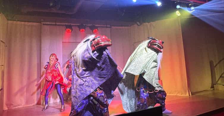 Immerse yourself in a captivating Japanese-style cabaret performance in the heart of Asakusa, Tokyo. Enjoy the graceful artistry of dancers in traditional kimonos and vibrant costumes, all while sipping on your included drink in a stylish, intimate theater setting.