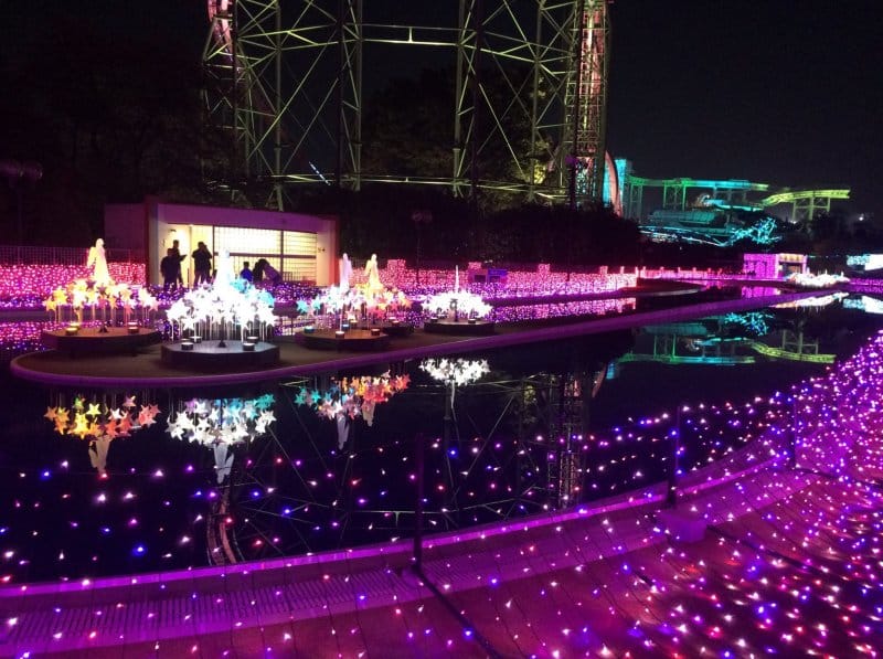 Enjoy synchronized fountain shows with water jets, lasers, and fire, plus illuminated rides offering thrilling views over Tokyo’s skyline. Powered by 100% renewable energy, it’s a sustainable sparkle perfect for dates, families, and illumination lovers.