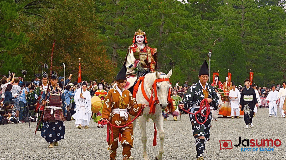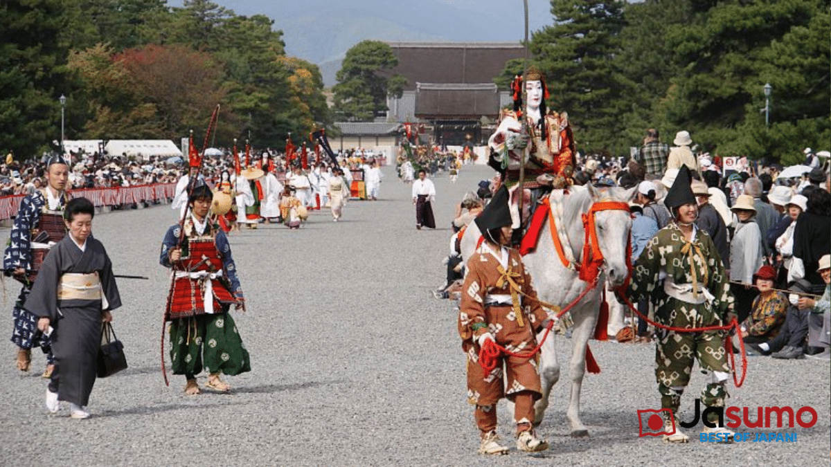 Contact Jasumo Now →The Jidai Matsuri Festival (Festival of the Ages) stands proudly among Kyoto’s three grand festivals—alongside Aoi Matsuri (May) and Gion Matsuri (July). Orchestrated by Heian Jingu Shrine, this monumental event revives 1,300 years of Japanese history through a breathtaking historical procession that winds through the ancient capital like a living scroll.