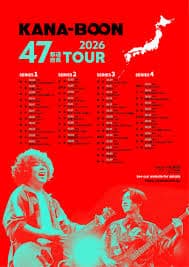 Program (All Dates): Alt-rock rampage (~90–120 min + encore). Core: “Silhouette”, “Nai Nai”, “Torch of Liberty”, Origin grooves, new 2026 teases. Subject to change; no intermission—relentless rock relay. Separate drink fee required upon entry. Performers: KANA-BOON (Yuuma Meshino, Kohei Hayakawa, Takuya Yamazaki).