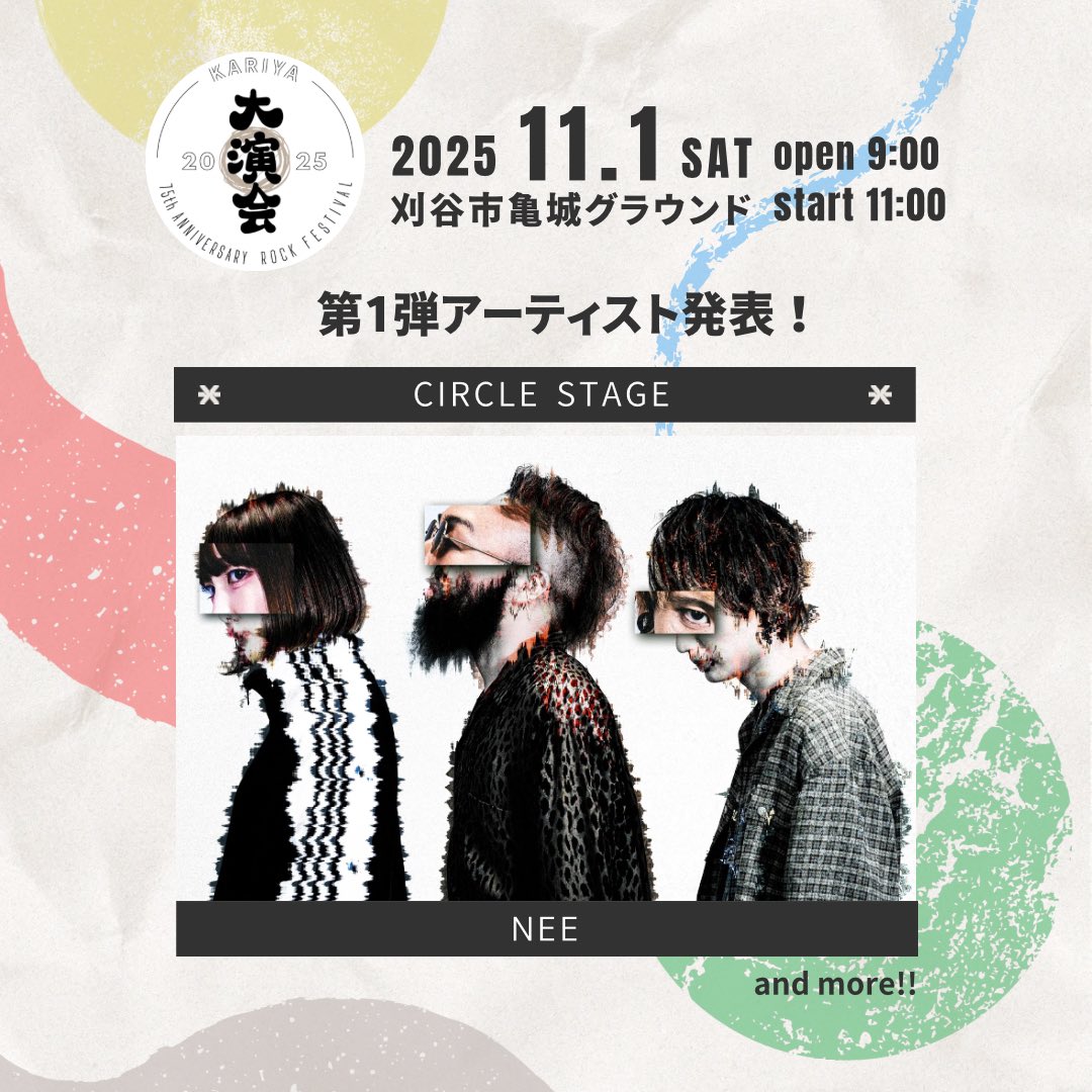 Celebrating the 75th anniversary of Kariya City’s establishment, the KARIYA Grand Performance 2025 is the largest outdoor music festival in Nishi Mikawa, taking place on November 1, 2025 (Saturday) at 11:00 at the Kijo Ground Outdoor Special Stage in Aichi Prefecture. Featuring J-rock and indie bands like Suspended 4th, NEE, and LUCKY TAPES, with event navigator Akio Kondo as emcee (also performing live), this family-friendly event offers vibrant performances and a festive atmosphere on an open-air stage with a capacity of ~5,000–10,000, lauded on X for its “lively vibe and scenic setting.” Tickets are ¥6,500 (adults), ¥6,000 (seniors, 60+), and include free entry for one junior high school student or younger per ticket holder (with restrictions). The lottery application is open until September 28, 2025, 23:59 JST, signaling high demand. Located near Kariya Station, it’s perfect for exploring Kariya’s Mikawa Bushi heritage or nearby Nagoya attractions. Secure tickets early via Jasumo due to limited capacity and the event’s regional popularity.
