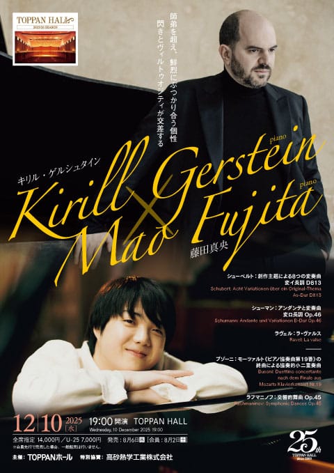 The Kirill Gerstein & Mao Fujita Piano Duo Recital Japan 2025 is a historic collaboration between acclaimed American pianist Kirill Gerstein and his protégé, Japanese star Mao Fujita, performing together for the first time in Japan. Scheduled at Aichi Prefectural Arts Theatre Concert Hall (December 5, 2025), Hyogo Performing Arts Center KOBELCO Large Hall (December 6, 2025), and Hiroshima Ueno Gakuen Hall (December 19, 2025), all at 19:00 (except Hyogo at 15:00), the program features Schubert’s 8 Variations, D.813, Schumann’s Andante and Variations, Op.46, Ravel’s La Valse, Busoni’s Petite Duo Concertante, and Rachmaninoff’s Symphonic Dances, Op.45. Praised on X for their “electric synergy” and “transcendent interplay,” this teacher-student duo (Gerstein mentors Fujita in Berlin,,) delivers a blend of virtuosity and emotional depth. Venues (~1,800–2,500 seats) offer superb acoustics in vibrant cities near Nagoya Castle, Kobe Port, and Hiroshima Peace Memorial Park. Tickets range from ¥7,000 (A seats) to ¥9,000 (S seats), with resale prices potentially reaching ¥8,000–¥11,000 due to high demand. Ideal for classical music enthusiasts and tourists, early booking via Jasumo is essential due to limited seating and the duo’s global acclaim.