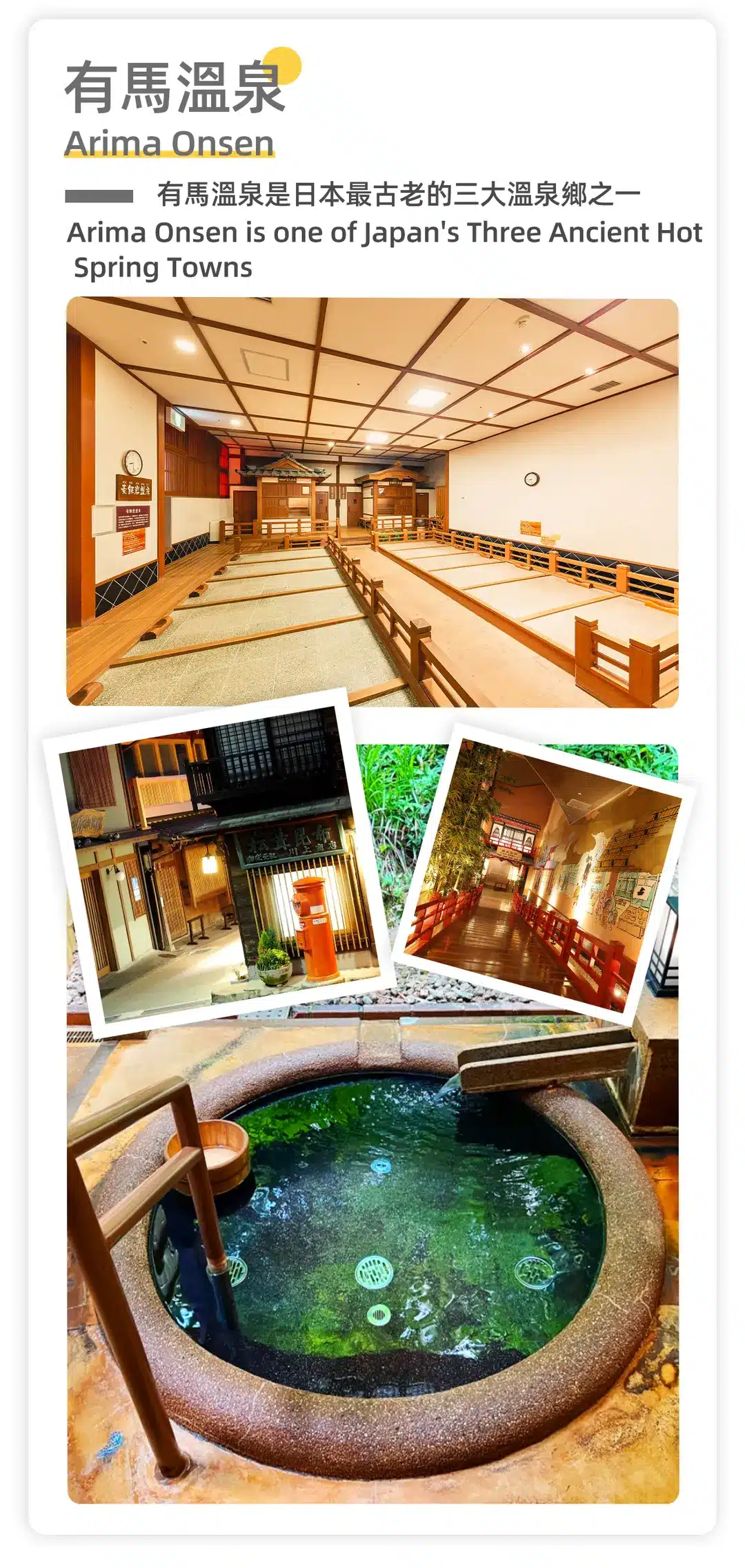 - Historic Hot Springs: Soak in Arima’s renowned Kin no Yu (Gold Spring) and Gin no Yu (Silver Spring) for skin-beautifying and joint-relieving benefits.