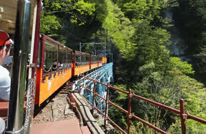 After lunch, board the famous Kurobe Gorge Railway trolley train. The open-sided cars offer dramatic views as the train winds through tunnels, over bridges, and past steep cliffs and waterfalls. The full journey takes around 1 hour 40 minutes and includes a short stop to stretch your legs and take in the mountain air.