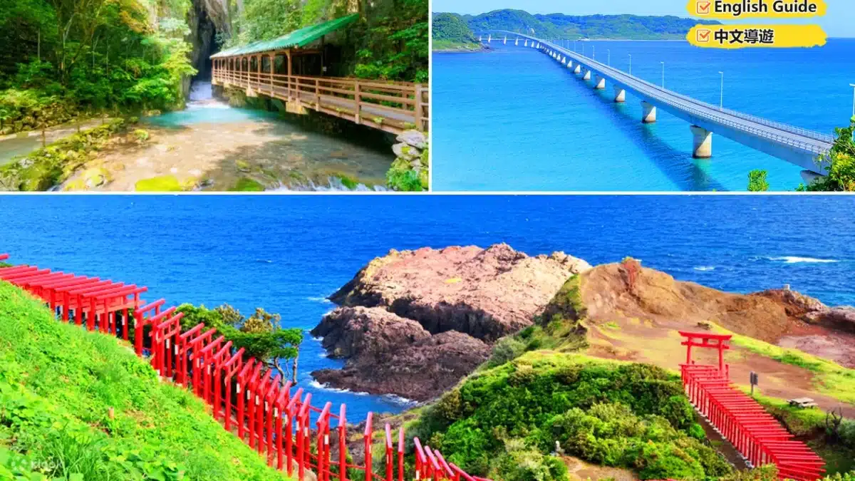With expert guidance in English and Chinese, you’ll visit the mystical underground world of Akiyoshido Cave, the iconic red torii tunnel at Motonosumi Inari Shrine, and the breathtaking seascape of Tsunoshima Bridge — all within a convenient round-trip journey by comfortable transportation.