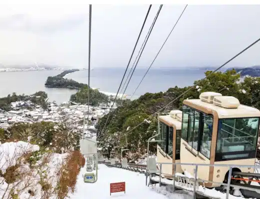 Take a scenic ropeway ride to the Biwako Valley Observation Deck, located at an elevation of approximately 1,100 meters. The deck provides panoramic views of Lake Biwa and the surrounding mountains. On clear days, you can see the horizon where sky and lake merge. There are also restaurants and walking trails nearby for a relaxed visit.