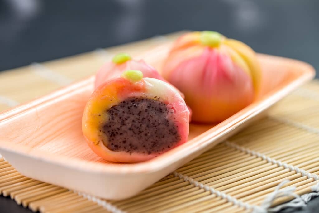 Japanese traditional confectionery cake wagashi served on plate