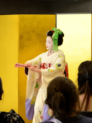Following the performances, an English-speaking staff member will share insights into the Maiko’s background, training, and attire, including the significance of her kimono, hairpieces, and iconic white makeup.