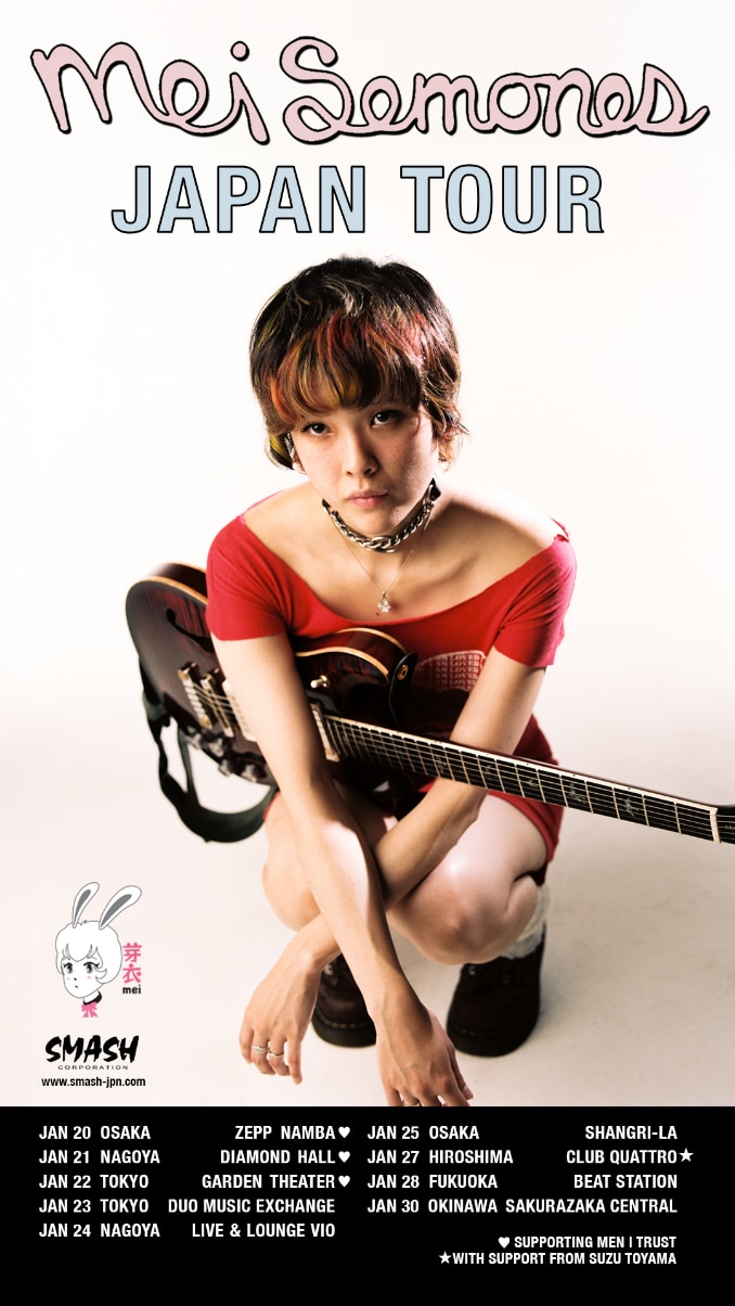 MEI SEMONES JAPAN TOUR 2026 is an intimate, bilingual indie-pop voyage by Mei Semones (born 1997 in Ann Arbor, Michigan), the Brooklyn-based singer-songwriter with Japanese roots whose jazz-infused, genre-blending sound—melding bossa nova grooves, lo-fi confessions, and shimmering guitar lines with lyrics in English and Japanese—has earned her acclaim since her 2022 relocation to New York, highlighted by EPs like Kabutomushi (2024) and the debut album Animaru (May 2025), featuring tracks such as “Zarigani” and “I Can Do What I Want” that evoke nostalgic tides and self-assured vulnerability.