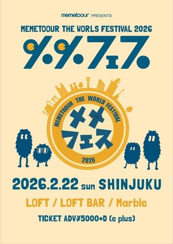 Memetaa the World Festival 2026 is an absolutely electrifying, pulse-pounding one-day multi-venue indie music extravaganza, brilliantly uniting three legendary and iconic Shinjuku live houses—Shinjuku LOFT, Loft Bar, and Marble—into a seamless, high-octane circuit of non-stop, adrenaline-fueled performances.