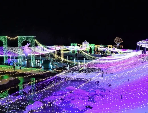The atmosphere mixes American holiday cheer—think giant Santa statues and candy-cane arches—with Okinawa’s laid-back resort vibe. Best of all, entry is completely free, and the lights stay on until midnight every night.