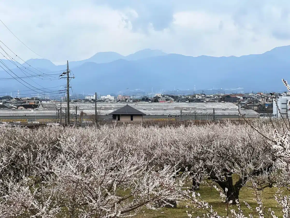 The Misato Plum Grove (Misato Bairin) was planted in the early 1970s as part of a local agricultural revitalization project in Takasaki’s Misato district. Farmers, facing declining rice profits, turned to plum cultivation on the steep, south-facing hillsides—ideal for the fruit’s cold-hardiness and long blooming period.