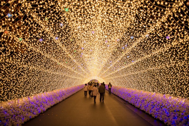 The Nabana no Sato Illumination 2025-2026 runs from October 18, 2025 to May 31, 2026—one of the longest illumination seasons in Japan, spanning over 220 nights. Located in Kuwana, Mie Prefecture, just 30 minutes from Nagoya, the park transforms into a glowing wonderland powered by over 8 million LED bulbs.