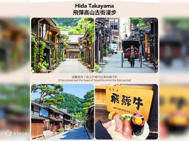 Contact Jasumo Now →Immerse yourself in this charming town surrounded by Japan’s Northern Alps. Famous for its preserved Edo-period architecture, it’s a wonderful place to stroll narrow streets, enjoy traditional wooden houses, and sample Hida beef, a local delicacy renowned for its high marbling and rich flavor.