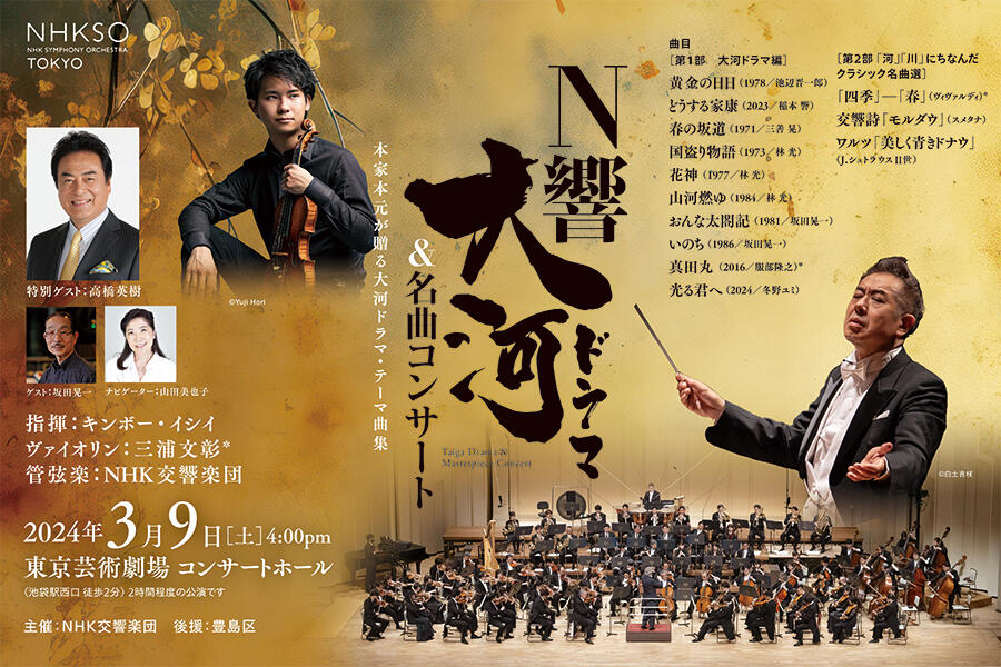 The NHK Symphony Orchestra “Taiga Drama & Classic Concert” is a captivating two-part performance scheduled for March 2026, conducted by Nodoka Okisawa with the NHK Symphony Orchestra and hosted by Naoko Tazoe. Part 1 celebrates iconic Japanese taiga drama themes, including Fuurinkazan (Akira Senju, 2007), Hideyoshi (Reijiro Koroku, 1996), Genroku Ryoran (Shinichiro Ikebe, 1999), Ryoma ga Yuku (Yoshio Mamiya, 1968), and Toshiie and Matsu: The Tale of Kaga’s Million Koku Domain (Toshiyuki Watanabe, 2002). Part 2 features river-themed classical masterpieces: Wagner’s Siegfried’s Rhine Journey at Dawn (from Twilight of the Gods), Ivanovici’s Waltz: Ripples on the Danube, and Smetana’s Symphonic Poem: The Moldau. Held at Omiya Sonic City Main Hall (2,505 seats) and Muse Ark Hall, Tokorozawa Civic Cultural Center (1,999 seats) in Saitama, this concert is part of the Agency for Cultural Affairs’ Children’s Cultural and Artistic Activities Support Program (FY2025), offering free admission for under-18s (born after April 2, 2007, 252 seats per venue). With pre-sale lotteries ending August 15, 2025, and high demand (X posts highlight “huge excitement” for taiga themes), early booking is critical.