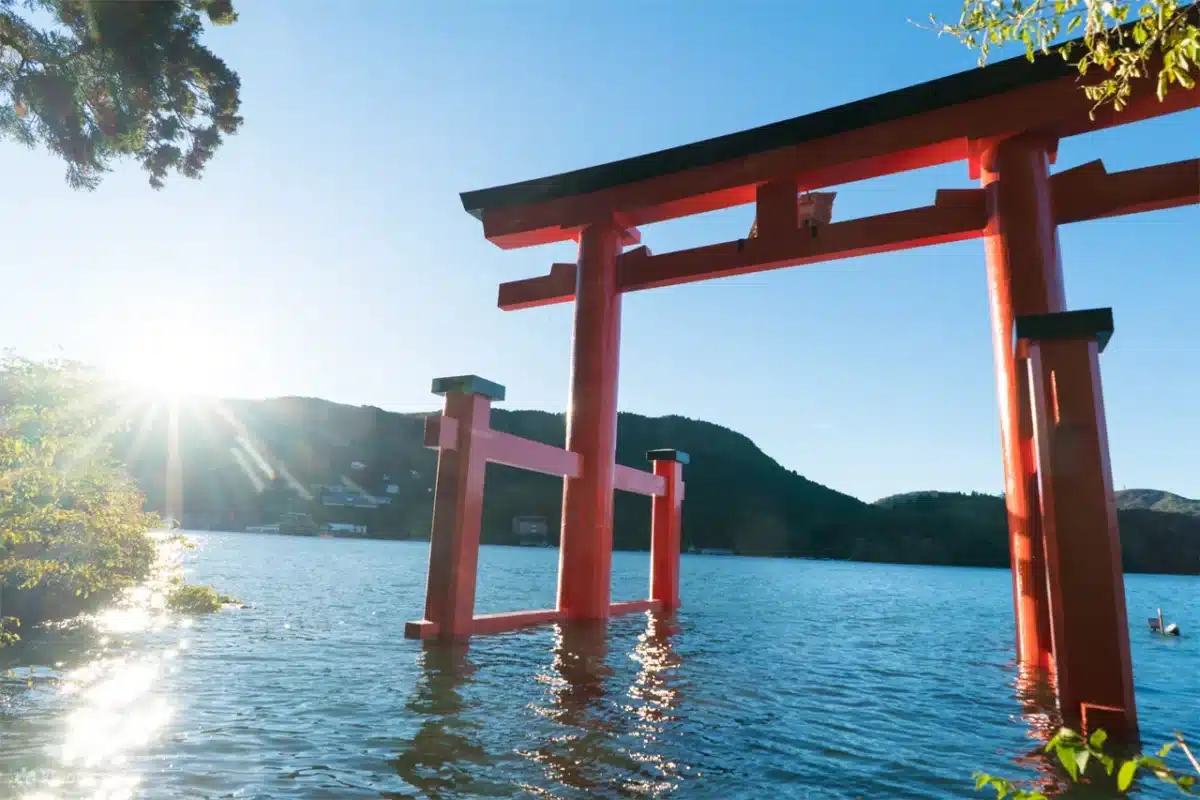 Next is the picturesque Sea Torii of Lake Ashi. Standing beside the lake and viewing the torii gate set against the backdrop of water and mountains creates a peaceful and moving moment.