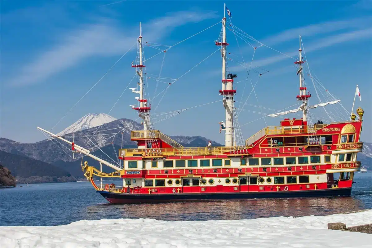 You’ll then board the unique Hakone Pirate Ship. This is a fun and adventurous way to take in the stunning views of Lake Ashi and possibly catch a glimpse of Mount Fuji.