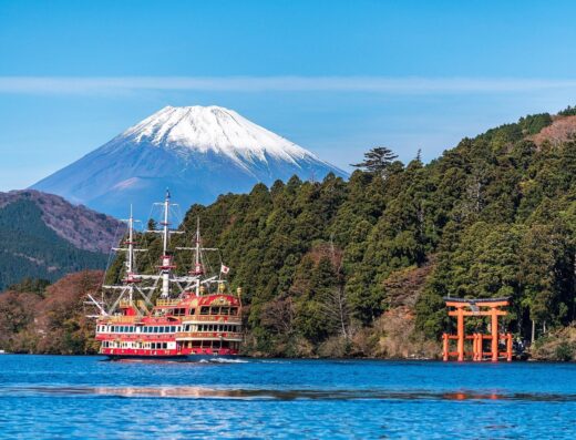 Stroll along the shores of Lake Ashi, known for its mirror-like reflections of Mt. Fuji, and visit the nearby Hakone Shrine, a beloved spiritual site with its iconic red torii gate standing in the water.