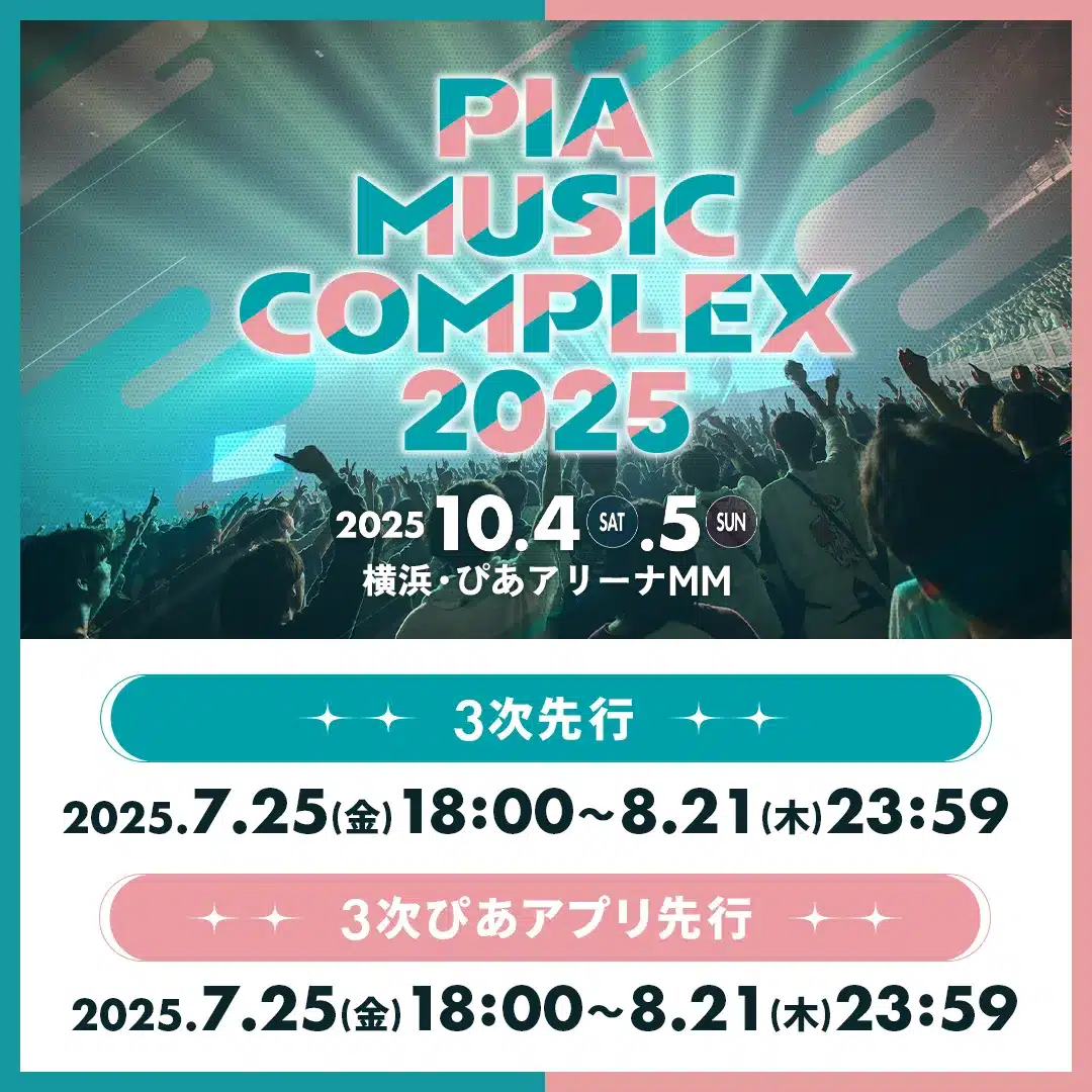 The PIA MUSIC COMPLEX 2025 (Pia Fes), hosted by Pia Corporation, is a premier two-day music festival scheduled for October 4–5, 2025, at Pia Arena MM in Yokohama, Kanagawa Prefecture. Since its inception in 2017, Pia Fes has grown into one of Japan’s most anticipated music events, showcasing a dynamic mix of rock, pop, and hip-hop acts. Held at the state-of-the-art Pia Arena MM, a 10,000-capacity venue opened in 2020 in Yokohama’s vibrant Minato Mirai district, the festival offers a high-energy experience with a diverse lineup. The 2025 edition features headliners like go!go!vanillas, Hump Back, Marcy, and RIP SLYME, alongside emerging artists, blending established and fresh talent. With its proximity to Tokyo and Yokohama’s cultural attractions, such as Landmark Tower and Chinatown, Pia Fes is a perfect blend of music and urban exploration for tourists visiting Japan.