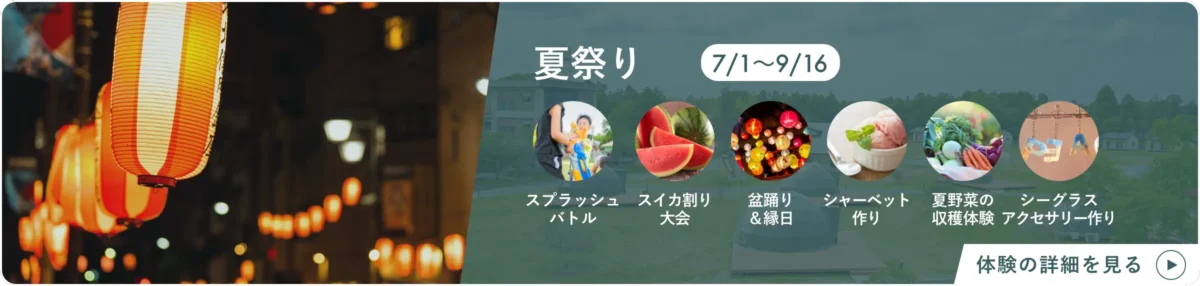 The resort functions as a theme park with over 20 different activities held daily. These change with the seasons to allow guests to experience local culture and nature fully. Activities range from large-scale seasonal events (like the festive Christmas theme) to smaller workshops and outdoor adventures.