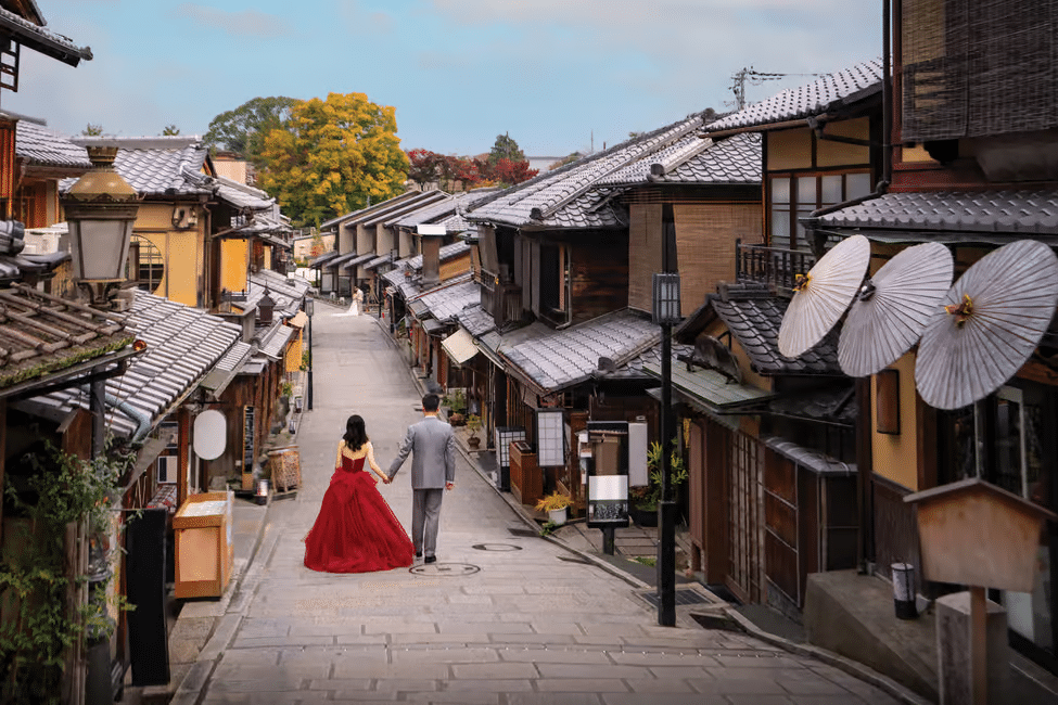 Capture the magic of your honeymoon, pre-wedding trip, or romantic getaway with a personalized couple’s photoshoot in the scenic streets of Kyoto.