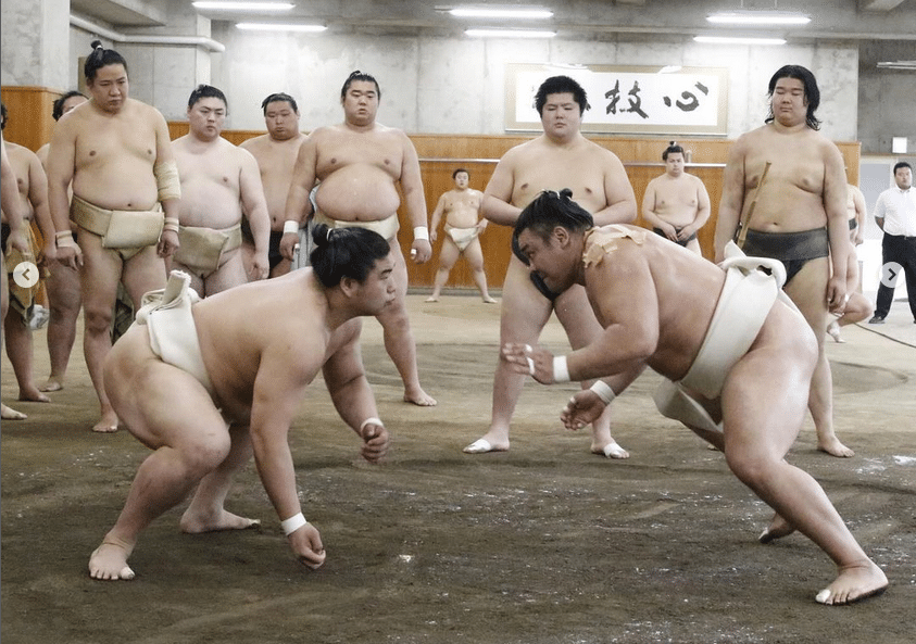 Morning: Open practice, sumo chants (jinku), forbidden technique demonstrations (hatsugiri).