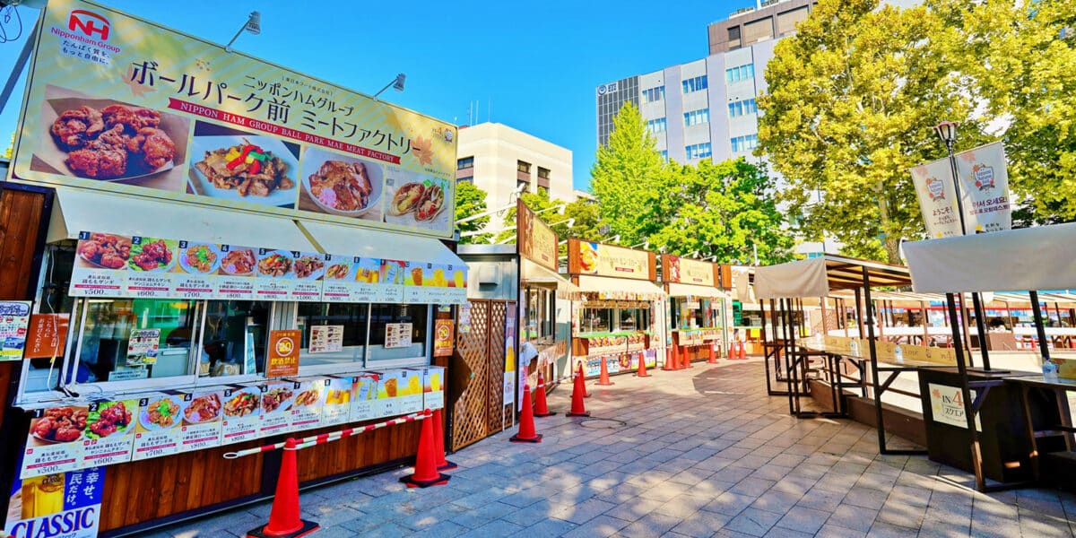 The festival spans about 1 kilometer of Ōdōri Park, divided into themed zones that highlight local flavors, regional specialties, and international treats: