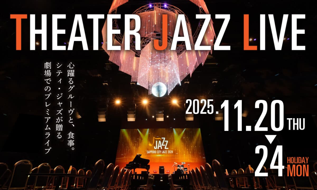 SAPPORO CITY JAZZ 2025 THEATER JAZZ LIVE is a premium jazz concert series transforming Sapporo Cultural Arts Theater Hitaru into an elegant live venue with gourmet hors d’oeuvres, craft cocktails, and world-class grooves under a dazzling 3-meter chandelier. Running from November 20 to 24, 2025 (Thu–Mon/Holiday), this winter highlight of the annual Sapporo City Jazz festival features nightly performances starting at 19:00 (doors 18:00), plus daytime shows on weekends (12:30 start, doors 11:30).