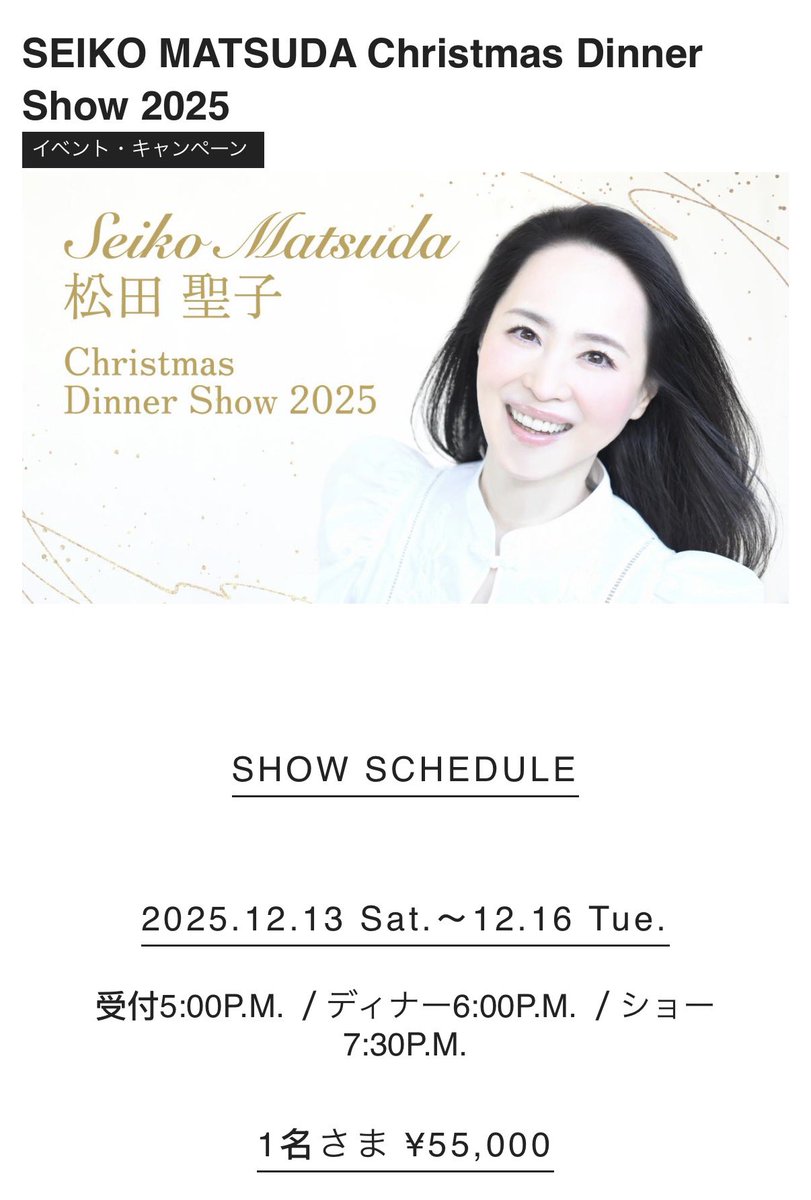 The lottery application for the Seiko Matsuda Christmas Dinner Show 2025 accommodation packages closes TODAY, Thursday, November 13, 2025, at 23:59 JST.