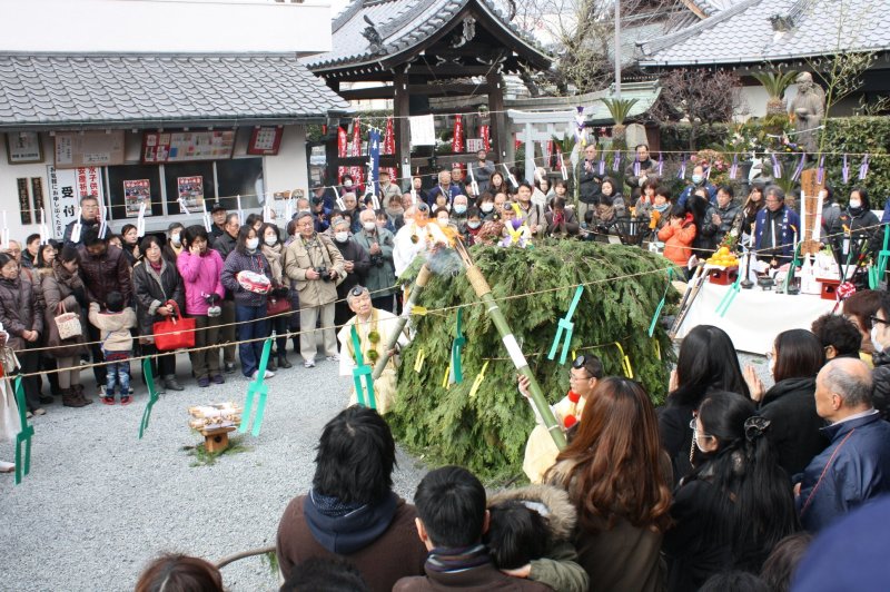 It’s a 1,300-year-old Buddhist fire ceremony at Jōkō Enmanji Temple, held to purify the spirit, ensure health, and bring good fortune for the year.