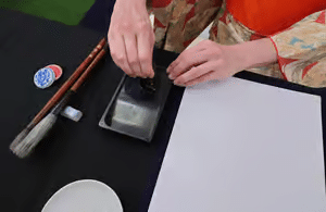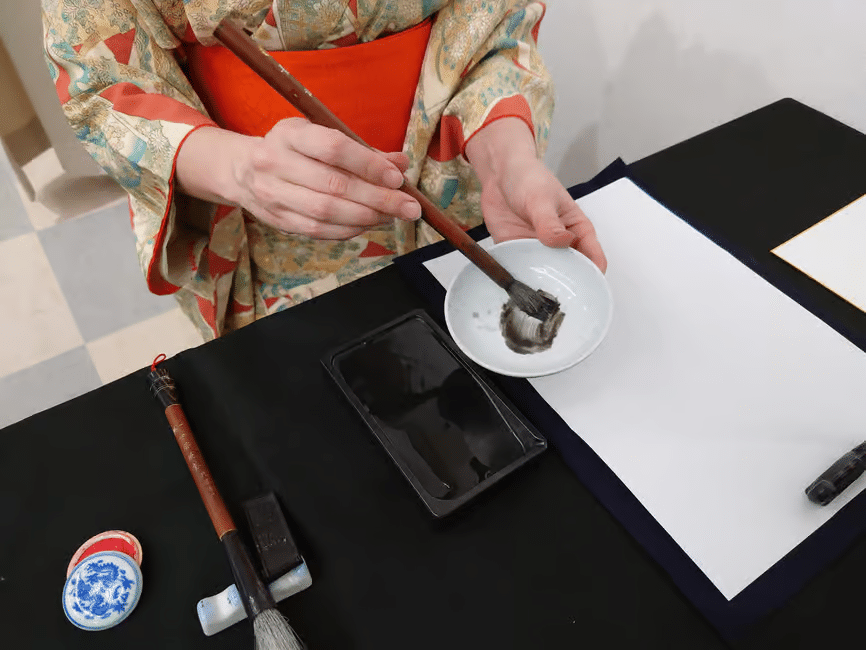 Your experience begins with grinding sumi ink on an inkstone (suzuri)—a slow, fragrant, and mindful process that connects you with centuries of Japanese artistic heritage. You’ll be guided through each step while appreciating the texture and aroma of fresh ink.