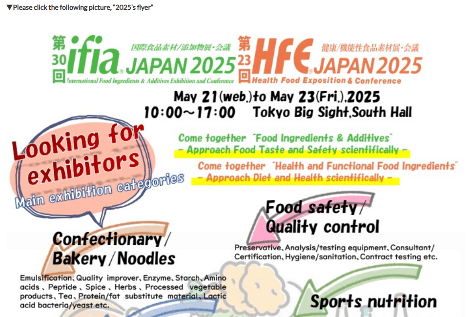 The 31st International Food Ingredients & Additives Exhibition and Conference (IFIA Japan 2026) is Japan’s largest and most influential trade show dedicated to the food ingredients,additives,and health food industry. Co-located with the 24th Health Food Exposition & Conference,this event is a must-attend for professionals involved in food science,product development,R&D,and regulatory affairs.