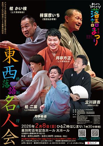 The 4th Makubetsu Rakugo Festival Special Performance “East and West Rakugo Masters’ Meeting” is a vibrant celebration of traditional Japanese rakugo storytelling, designed to spread this cultural art form across Hokkaido while fostering regional exchange through laughter and community engagement. Held on February 8, 2026 (Sun), at Makubetsu Town Centennial Memorial Hall in Makubetsu, Hokkaido, the event kicks off at 14:00 (doors at 13:30), featuring a lineup of esteemed performers from both eastern and western rakugo traditions, including Hayashiya Hikoichi and Tsukitei Hosei.