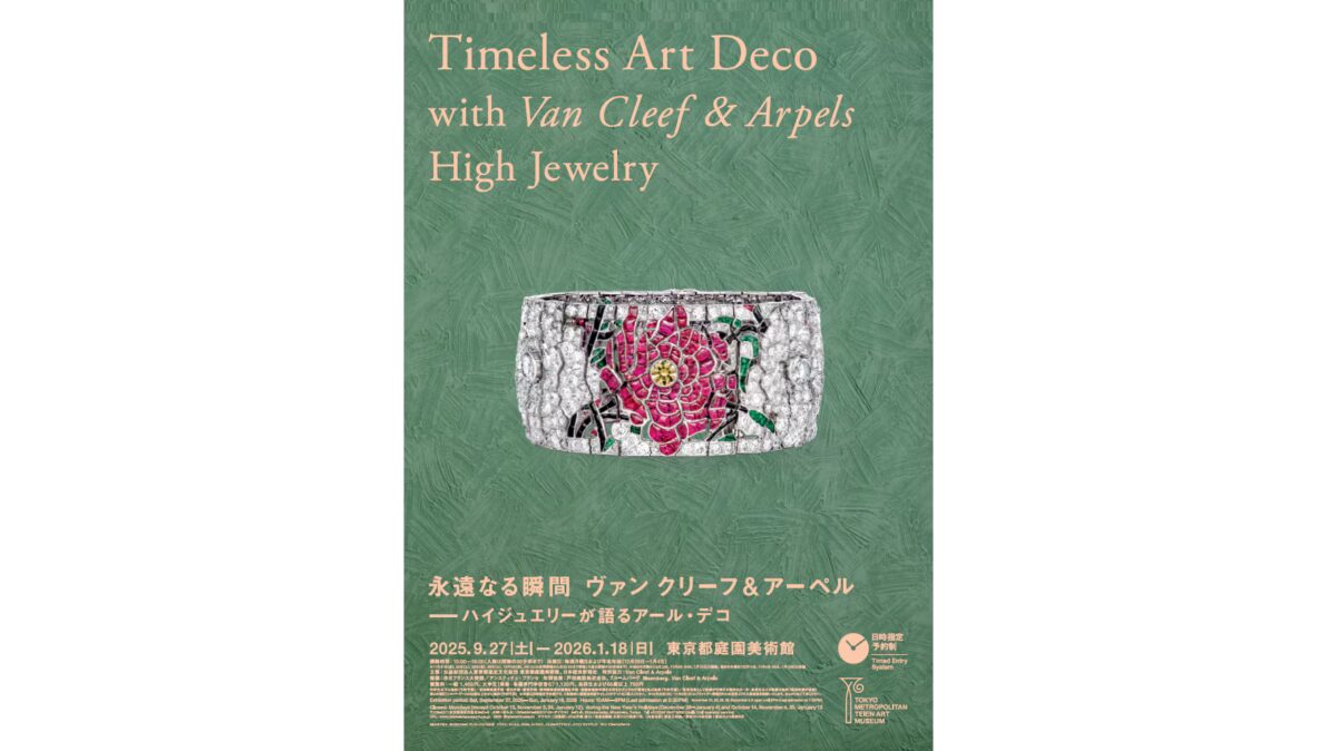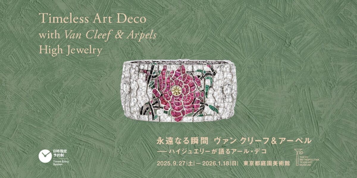 The Timeless Art Deco with Van Cleef & Arpels 2025-2026 exhibition runs from September 27, 2025, to January 18, 2026, at the Tokyo Metropolitan Teien Art Museum in Minato City, Tokyo. Visitors will encounter around 250 pieces of high jewelry, watches, and decorative crafts from the Patrimony Collection and private lenders, alongside approximately 60 archival documents.